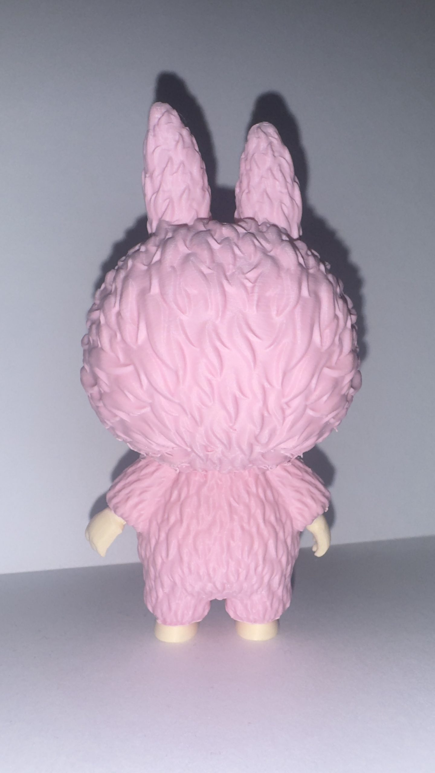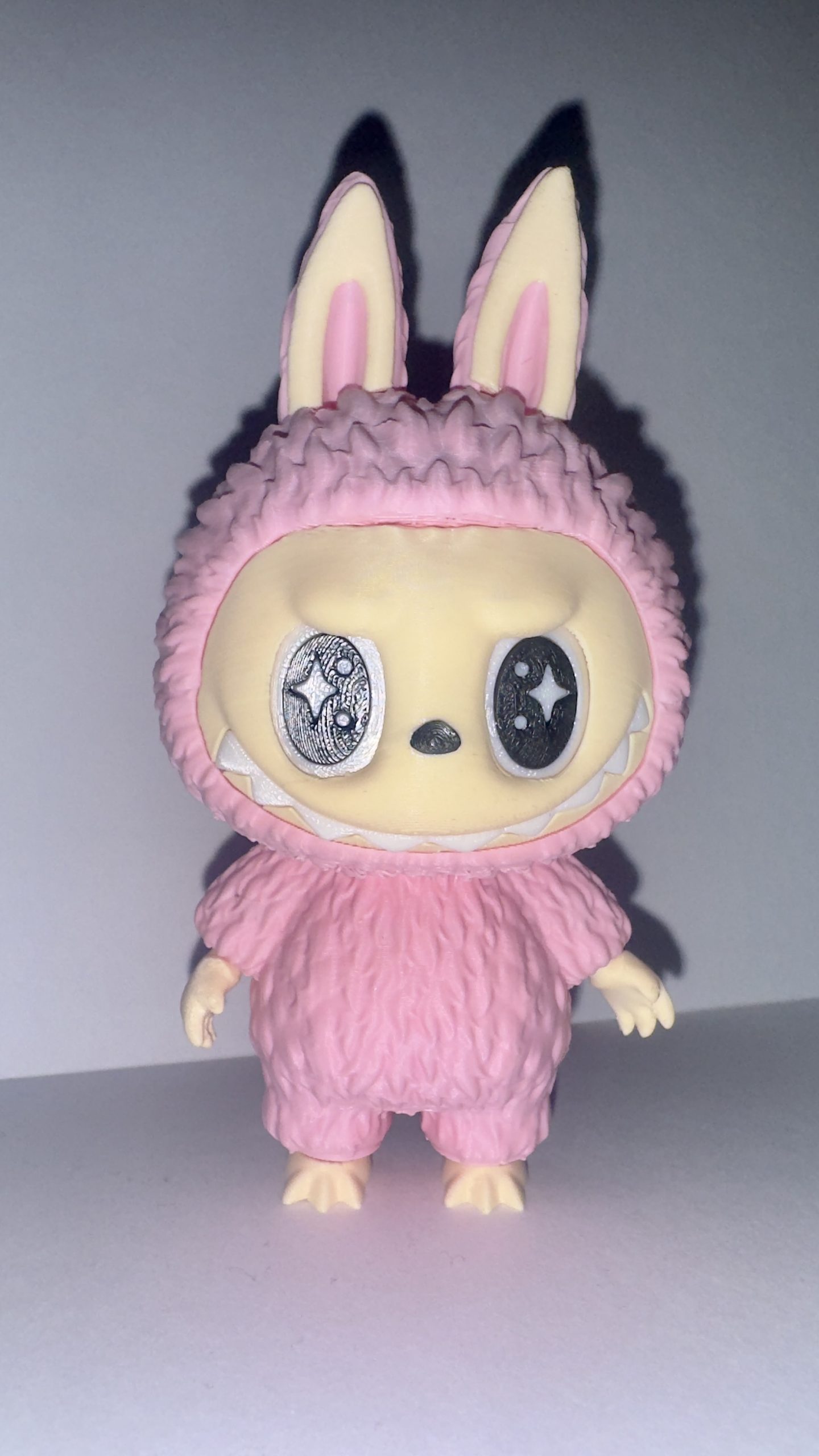 Bring home the charm of the beloved Labubu character with this custom 3D printed art toy! Measuring approximately 5.5 inches tall, this figure features Labubu in a pink furry monster costume, with cute bunny ears and an expressive face. Inspired by the designer toy aesthetic, this collectible is perfect for fans of pop art figures.